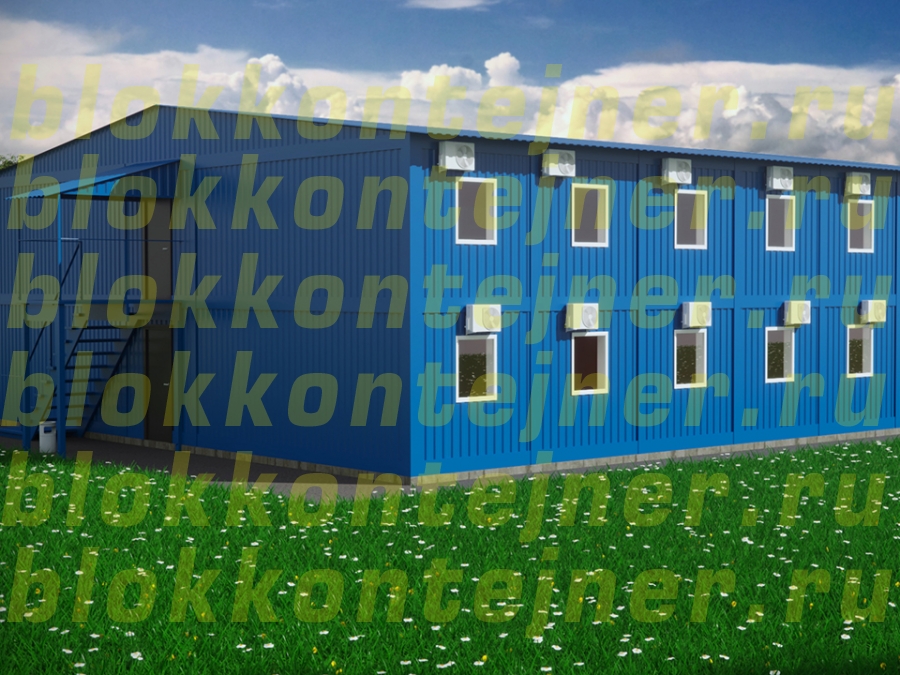 Блок-Модуль в два этажа размером 19.6*14,45*5,0м состоящие из Блок –контейнеров размером БК 6,0*2,4*2,5 - 24 шт.; БК 8,45*2,4*2,5 -8 шт.;
